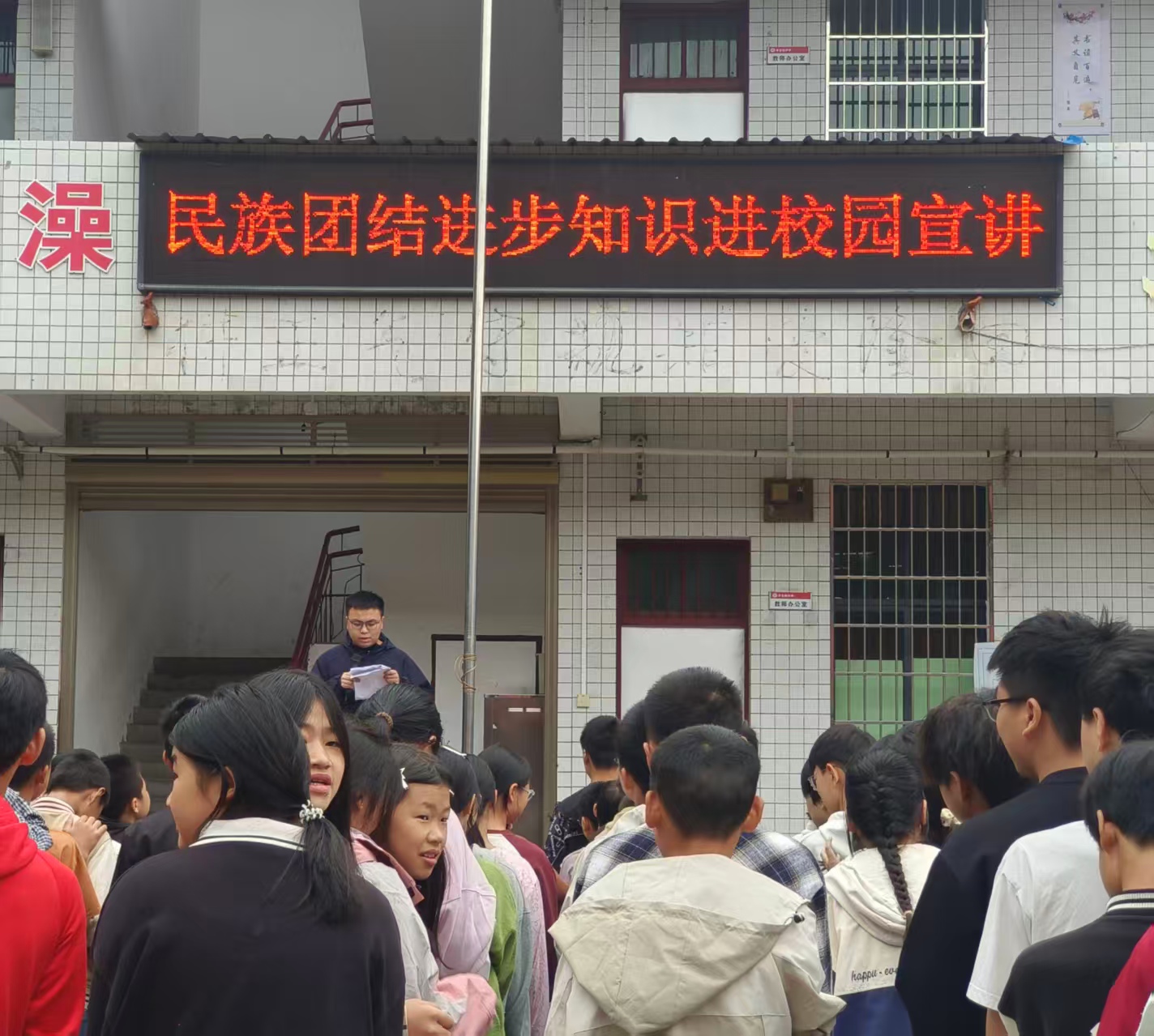 为深入贯彻落实党的民族政策,增强辖内群众对中华民族共同体的认同感和归属感,牢固树立“休戚与共、荣辱与共、生死与共、命运与共”的共同体理念。9月22日上午,羊古坳镇组织民族团结进步宣讲小队,联合部分人大代表走进羊古坳镇羊古坳中学,以国旗下讲话的形式开展专题宣讲活动。
