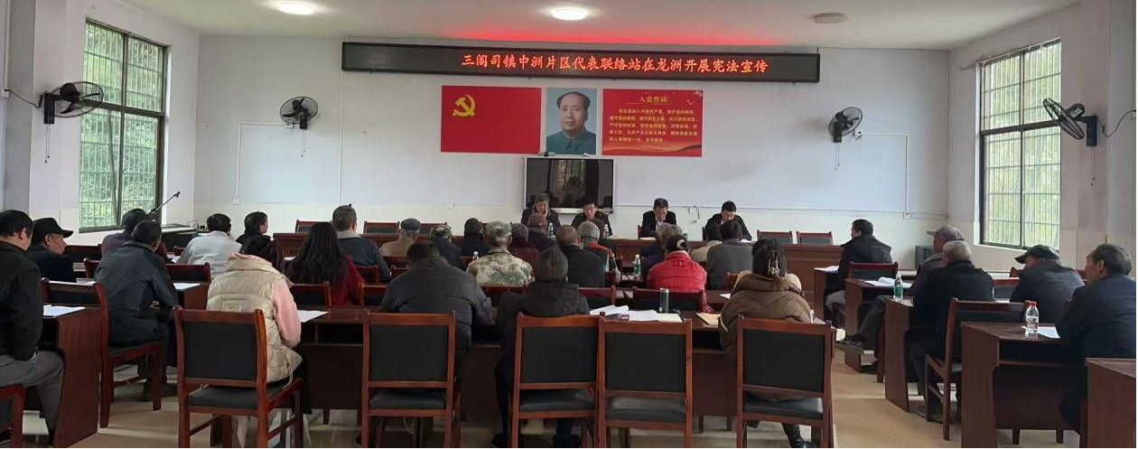 2025 年 12 月 4 日,在第十二个国家宪法日当天,隆回县三阁司镇中洲片区人大代表联络站在龙洲村组织开展了以“学习宣传贯彻习近平法治思想,推动宪法深入人心”为主题的宪法宣传活动。三阁司镇党委书记、镇人大代表刘松贵领衔宣讲,让宪法知识直达群众、法治精神浸润民心。龙洲村村民代表表示,此次宣讲活动接地气、听得懂、有收获,使大家更加明白了宪法与自己日常生活的紧密联系,增强了依法办事、依法维权的意识和能力。
